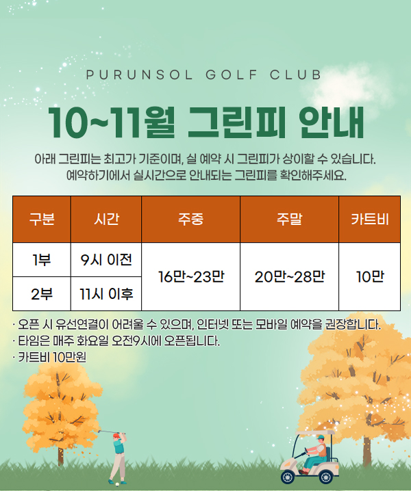 10~11월 그린피 안내
